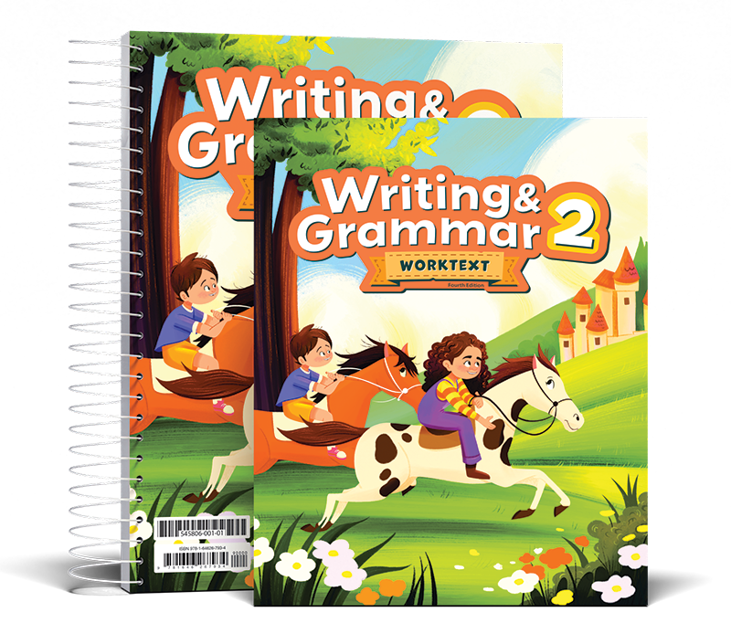 The Writing & Grammar 2 Worktext covers parts of speech, sentence structure, punctuation, and writing skills. Students learn to create poetry, narratives, opinion pieces, and informational texts.
