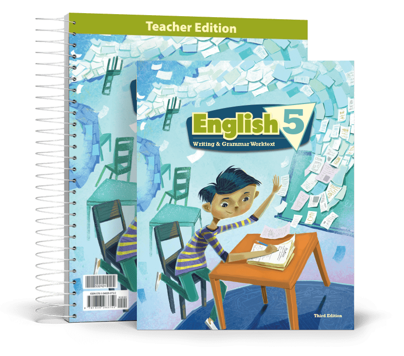 SKU546119$32.50The English 5: Writing & Grammar (3rd ed.) consumable worktext combines grammar and writing practice in one student-friendly consumable book. Age-appropriate illustrations enhance content to make learning more engaging.