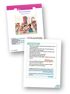 The BJU Press elementary reading program challenges students to engage with what they read. Literature—whether it is fiction, nonfiction, drama, or poetry—enables people to consider, make sense of, celebrate, lament, and even change the world. We want students to enjoy reading all types of literature so that they will become lifelong readers. We also want them to analyze, interpret, and evaluate everything they read from a biblical worldview. More than any other people, Christians should value reading because God reveals Himself to His people through a book. In addition to helping us know God, reading skills also prepare us to be better servants of Christ. The apostle Paul lays out for us the standard by which Christians should measure what they read: things that are true, honorable, right, pure, lovely, and commendable (Phil. 4:8). In other words, we should read that which conveys truth, goodness, and beauty.